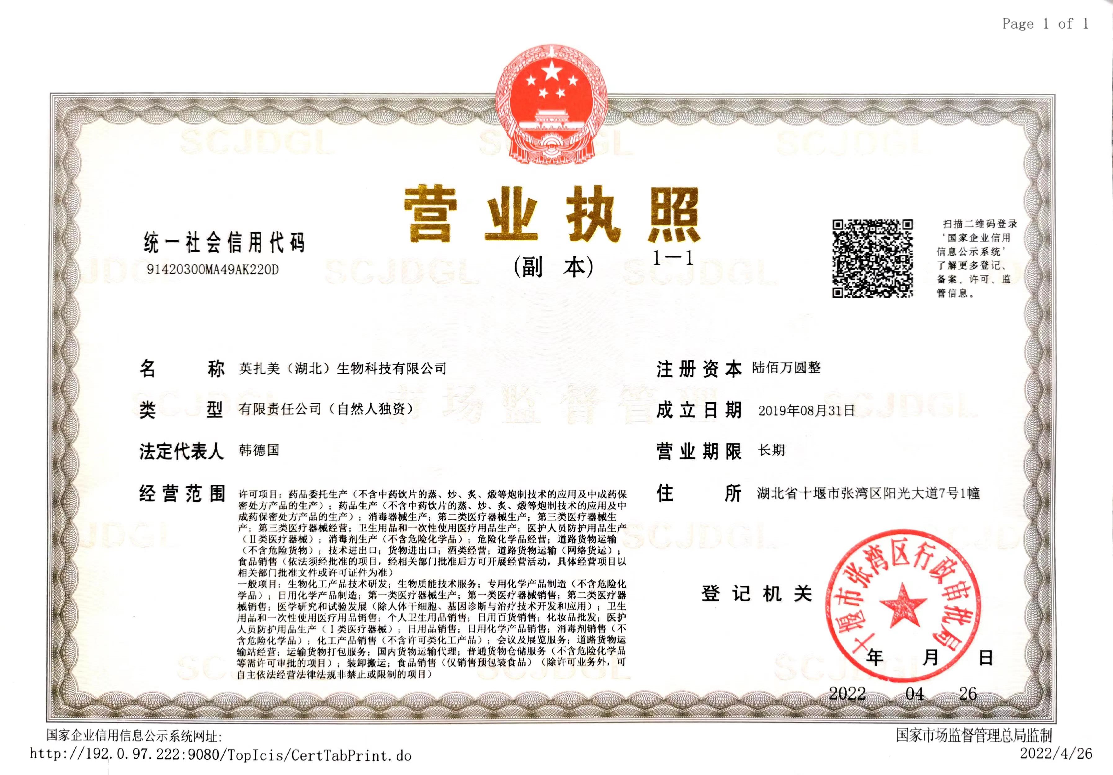 英扎美(湖北)生物科技有限公司